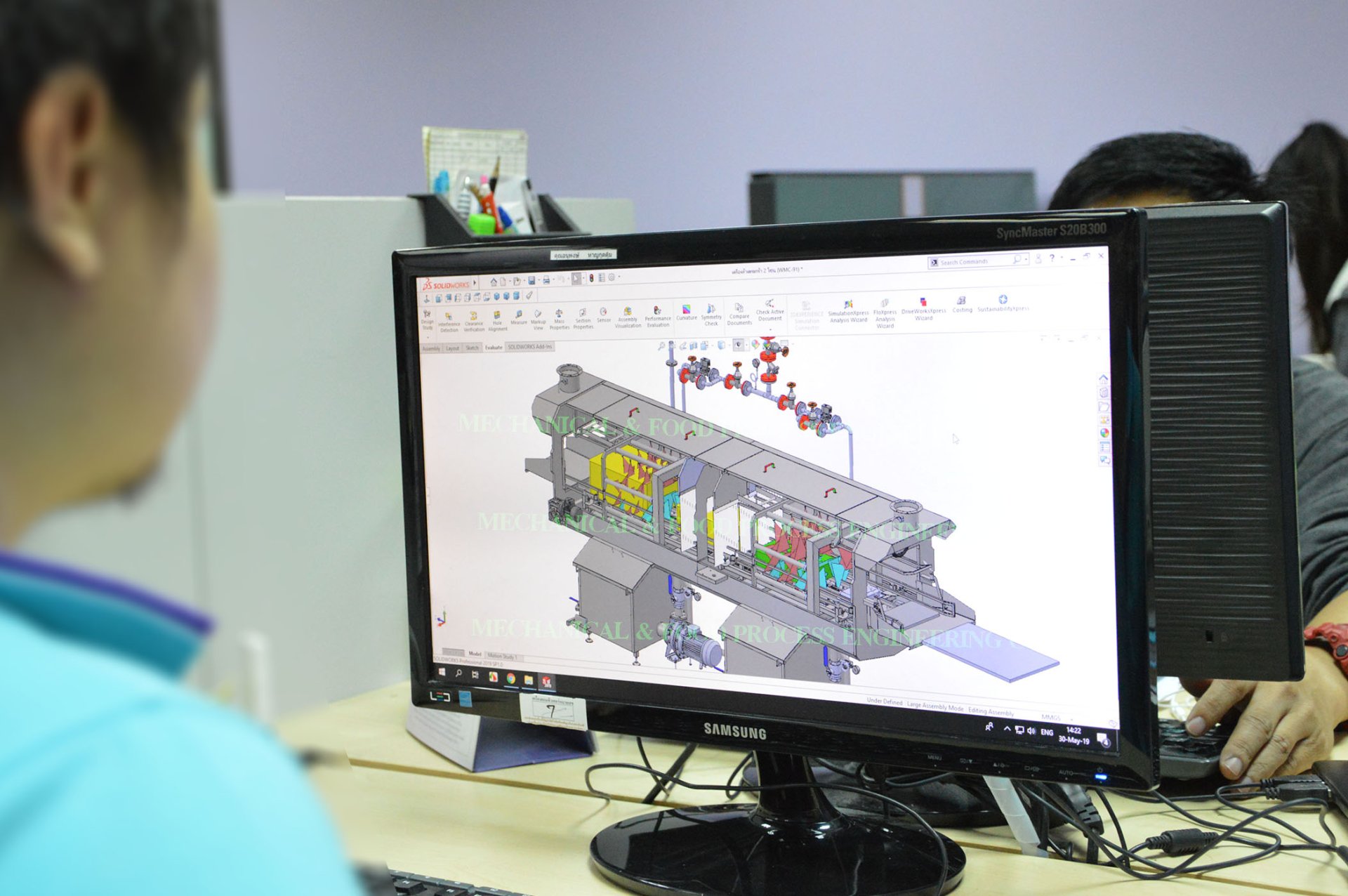 เราใช้การออกแบบเครื่องจักรด้วยคอมพิวเตอร์ โดยโปรแกรมซอฟต์แวร์การเขียน และออกแบบชนิด 2 มิติ และ 3 มิติ ที่มีลิขสิทธิ์ถูกต้องตามกฏหมาย เช่น SOLID WORK, AUTODESK INVENTOR , AUTOCAD และ VISUAL COMPONENTS เพื่อสาธิตให้กับลูกค้า โดยสามารถแสดงภาพจำลองสถานะการทำงานของกระบวนการผลิตได้เข้าใจ และเห็นภาพได้อย่างชัดเจน